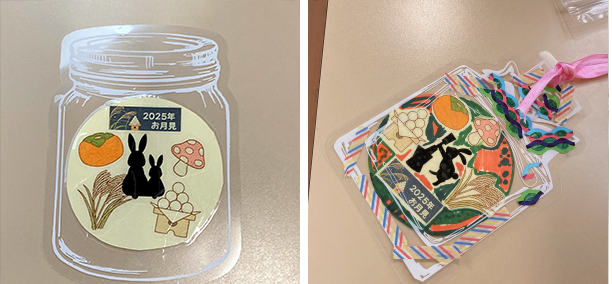 あいち小児保健医療総合センター(愛知県大府市)で、お月見のシーズンにあわせ「月」をテーマにしたイベントを開催しました。入院している子どもたちと、月のお話やクイズをしたのち、お月さまに見立てた丸い紙にうさぎやお団子のシールをはり、シールシートではさんで、栞を作りました。サインペンやマスキングテープで飾りつけするなど、素敵な作品がたくさんできました。(2025.10.23)
