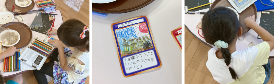 春日井市の子育て子育ち総合支援館(かすがいげんきっ子センター)でも、この夏、ちりめんモンスターのワークショップを開催しました。今年はアイゴ、カワハギが多かったです。そして、そして、レアなタツノオトシゴも見つけました!みんなでカードつくったり、レジンでキーホルダーづくりしました(2025.8.30)